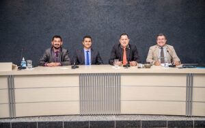 A nova Mesa Diretora do Legislativo Municipal: Edimar Capiche-Secretário; Ezequiel Câmara “Minduim”-Segundo secretário; Magnison Mota-Presidente e Luiz Fritz-Vice Presidente