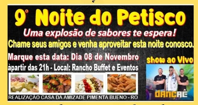 9ª Noite do Petisco será realizada neste sábado em Pimenta Bueno com show ao vivo e ação beneficente