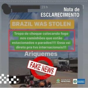 Em momento algum houve por parte de policiais militares ateamento de fogo em caminhões. A Polícia Militar de Rondônia preza pelo cumprimento das legislações em vigor.