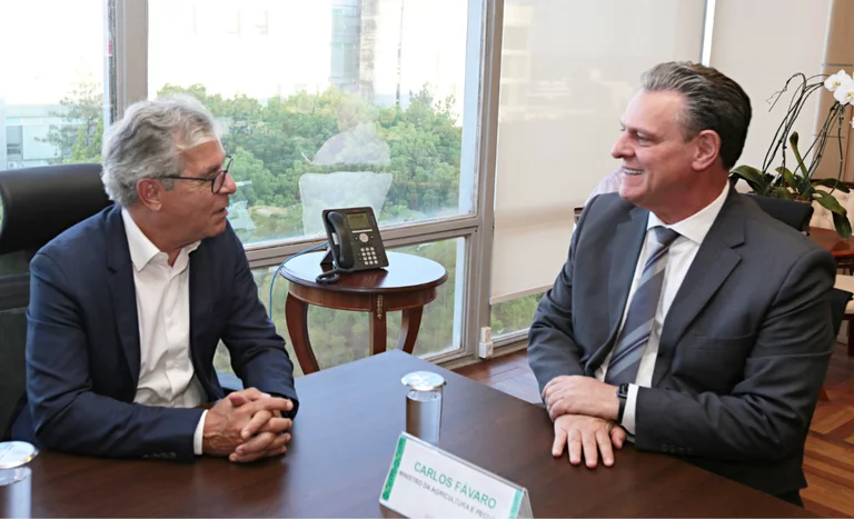 O ministro da Agricultura e Pecuária, Carlos Fávaro, recebeu na terça-feira (30) o presidente da Agência Brasileira de Promoção de Exportações e Investimentos (ApexBrasil), Jorge Viana, para tratar da abertura do mercado chileno aos frigoríficos do Acre e Rondônia.