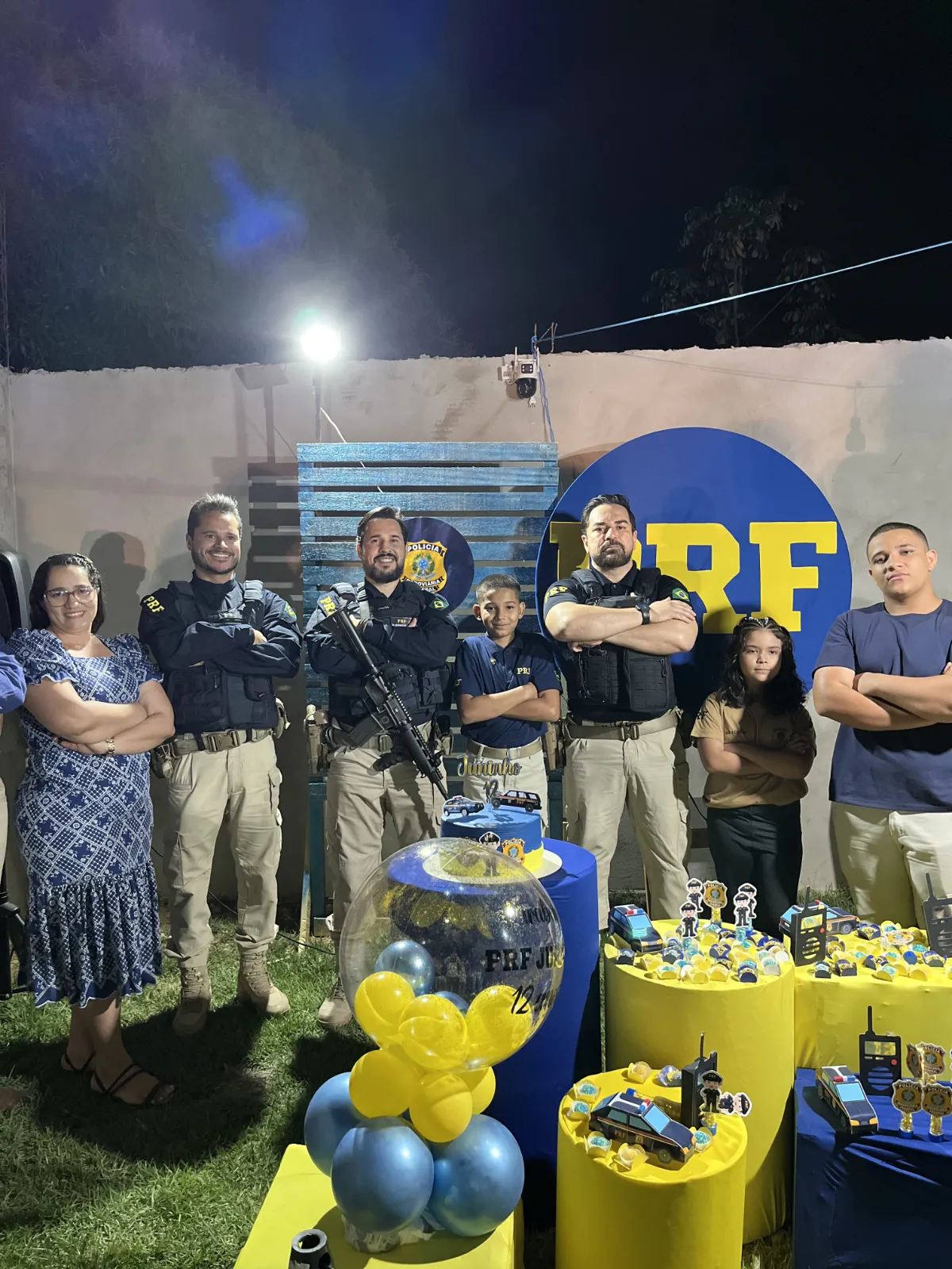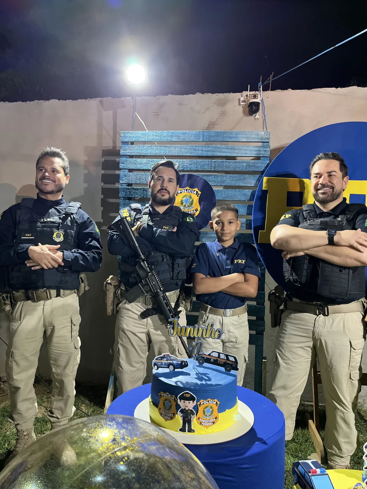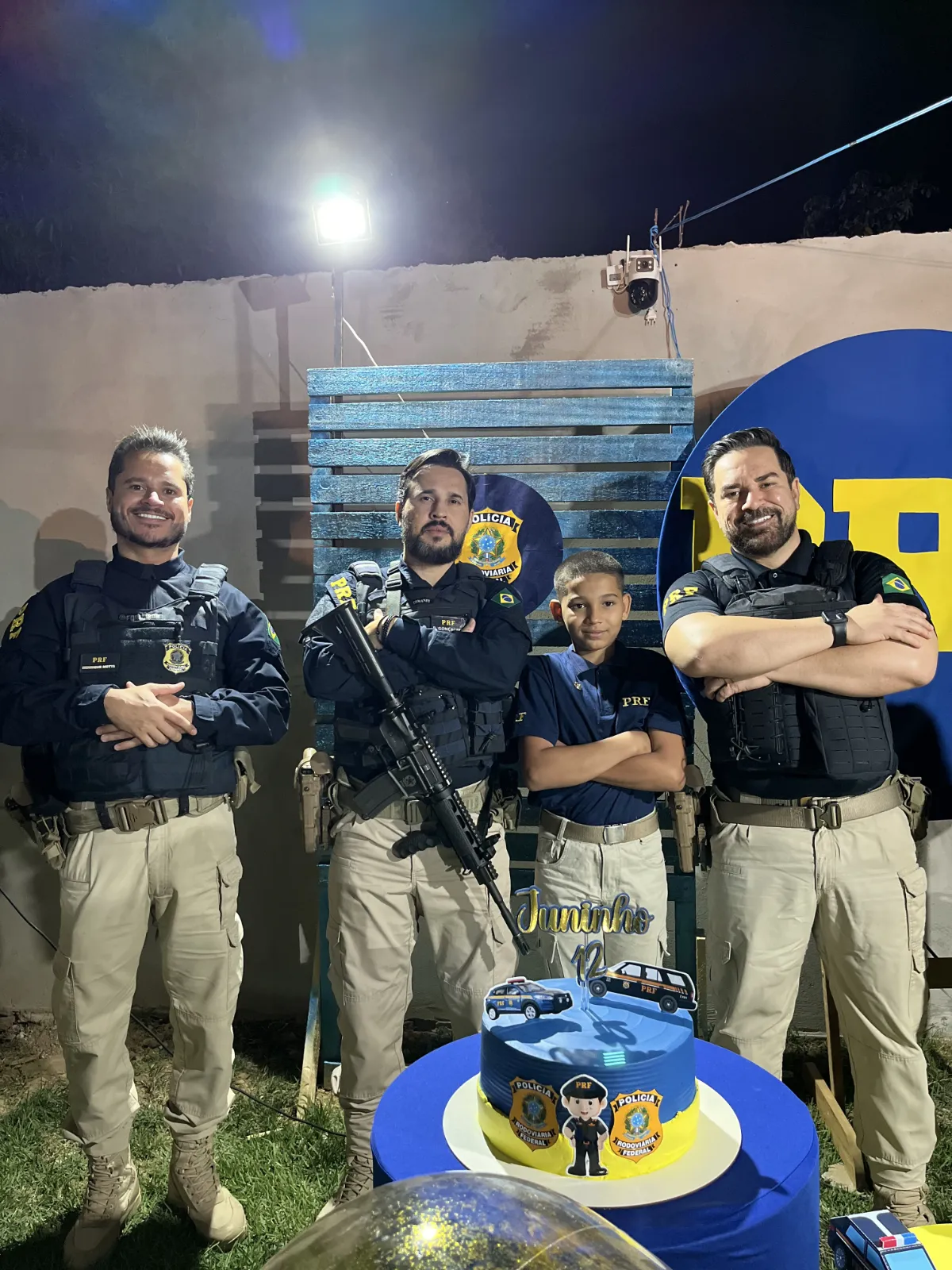 Neidiane Pires, mãe de Juninho, contou que a ideia surgiu como uma “festinha de gratidão ao Senhor”, depois de um período de luto profundo. E na hora de escolher o tema, Juninho foi certeiro: PRF. “Ele sempre fala: ‘Quando eu crescer, quero ser PRF, vou trabalhar na rodovia’”, lembrou a mãe.