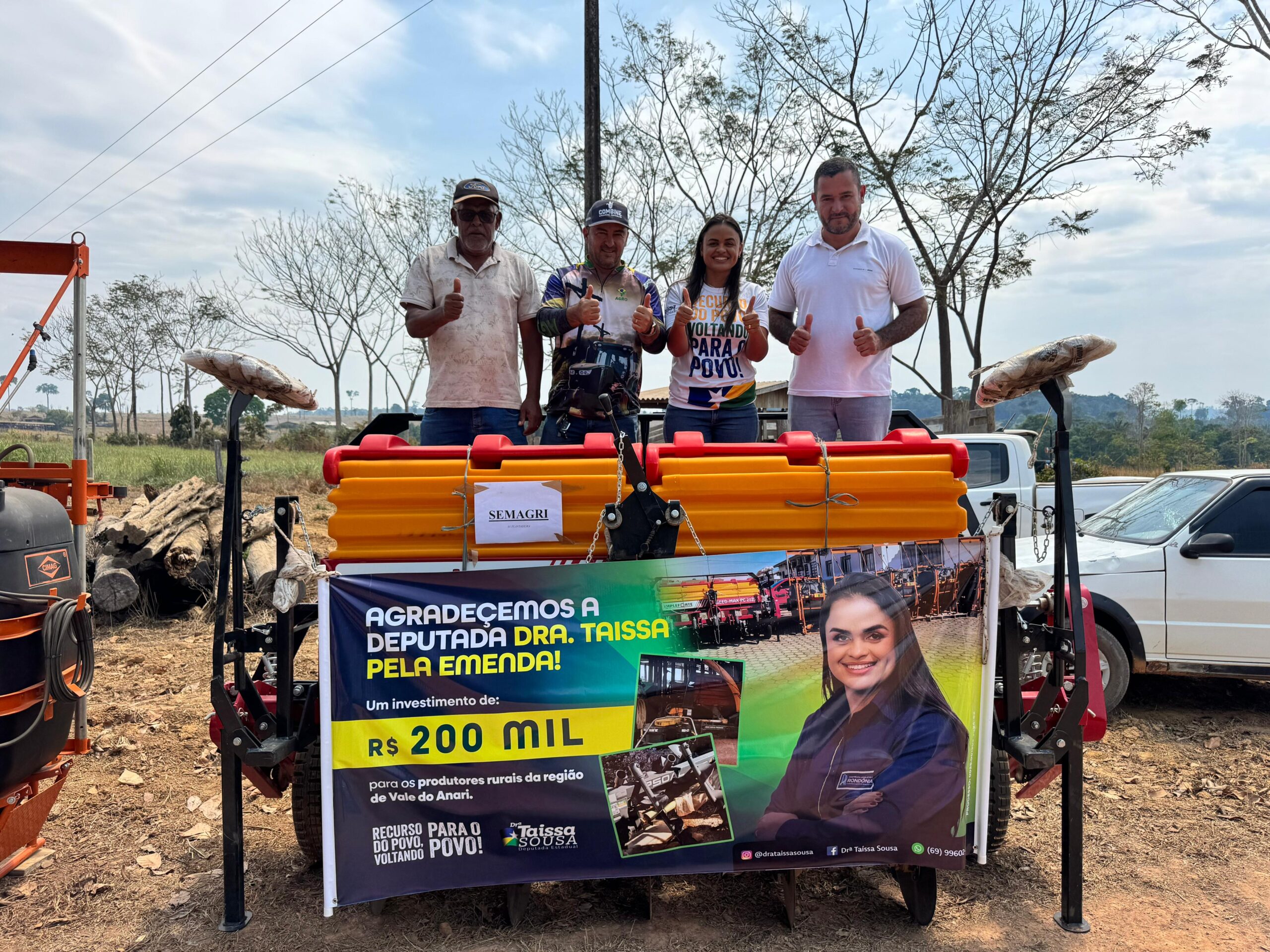 No último sábado, 16 de agosto, a deputada estadual Dra. Taíssa Sousa (Podemos) realizou a entrega de R$ 200 mil em equipamentos agrícolas para fortalecer a agricultura familiar no município de Vale do Anari.