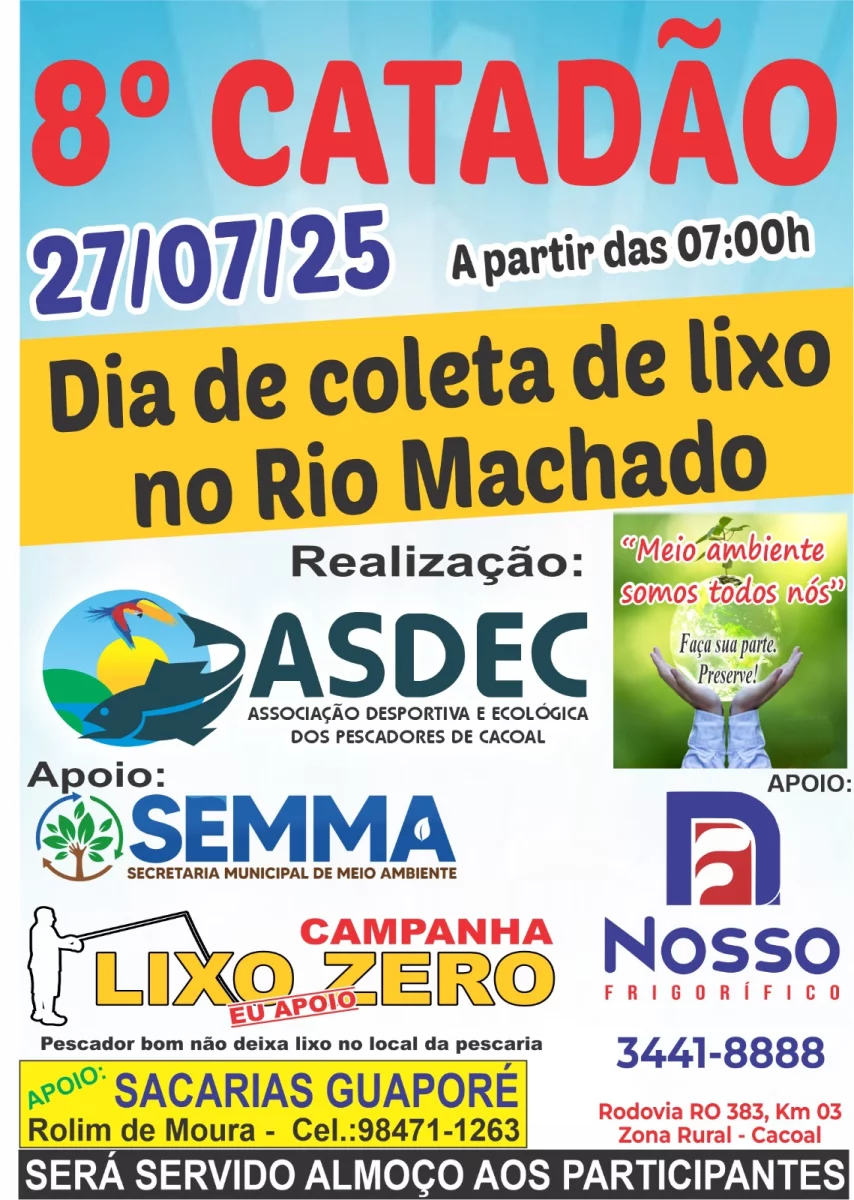 Outra iniciativa relevante foi o Projeto Catadão, voltado à retirada de resíduos sólidos do Rio Machado. A ação envolveu voluntários e parceiros institucionais na remoção de materiais como garrafas, pneus e eletrodomésticos descartados irregularmente.