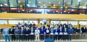 A Assembleia Legislativa de Rondônia (Alero) homenageou nesta quinta-feira (24), em sessão solene, o reitor da Faculdade Católica de Rondônia (FCR), professor, Dr. Fabio Rychecki Hecktheuer, com a Medalha do Mérito Cultural “Professor Amizael Gomes da Silva”, maior honraria concedida pela Casa. Conduzida pelo deputado Cirone Deiró (União), a solenidade homenageou também os componentes do Tribunal Regional Eleitoral de Rondônia (TRE – RO) com Medalhas do Mérito Legislativo.