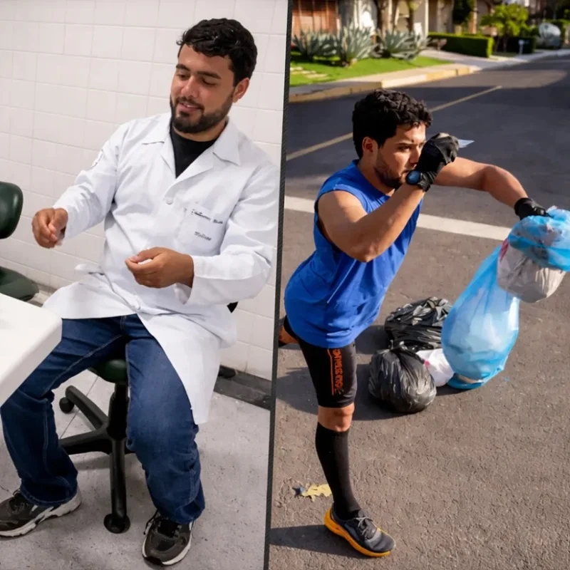De dia, ele mergulha nos livros de medicina. À noite, encara o que a cidade rejeita, recolhendo o lixo que ninguém quer ver.