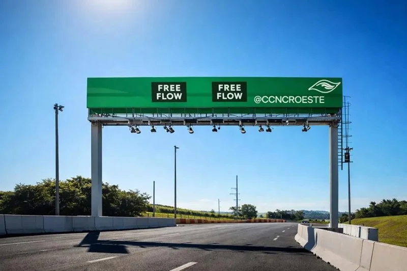 O Free Flow elimina cabines e exigência de parar nos pedágios, substituindo-as por pórticos com sensores e câmeras que identificam placas ou tags para cobrança automática de tarifa proporcional ao trecho percorrido.