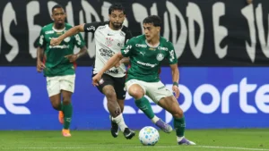 O Corinthians perdeu André, expulso, aos 34 minutos, por conta de um “gesto obsceno“, em lance que contou com ajuda do VAR. Na sequência, o Timão até assustou em cabeceio de Gabriel Paulista, que pingou na área e foi para fora. O Palmeiras conseguiu ficar mais com a bola, mas não finalizar.