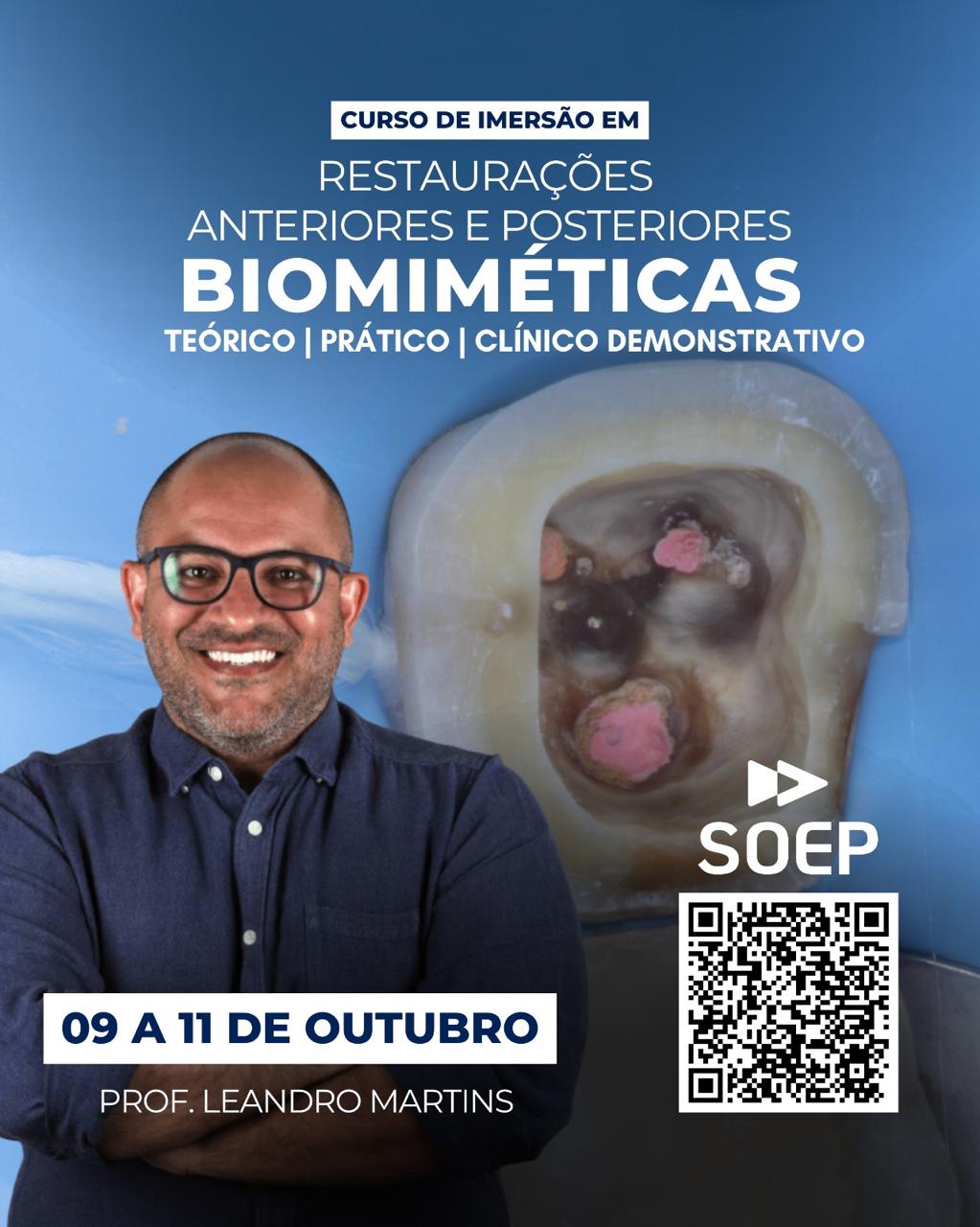 Curso restaurações biomiméticas em dentes anteriores e posteriores — uma abordagem que valoriza a preservação e simulação dos tecidos dentários naturais com técnicas avançadas. Tem o objetivo de capacitar o dentista a reproduzir com precisão a forma, função e estética dos dentes naturais, usando técnicas biomiméticas, com foco na seleção de materiais, aplicação prática em restaurações diretas e indiretas para maior durabilidade e naturalidade.