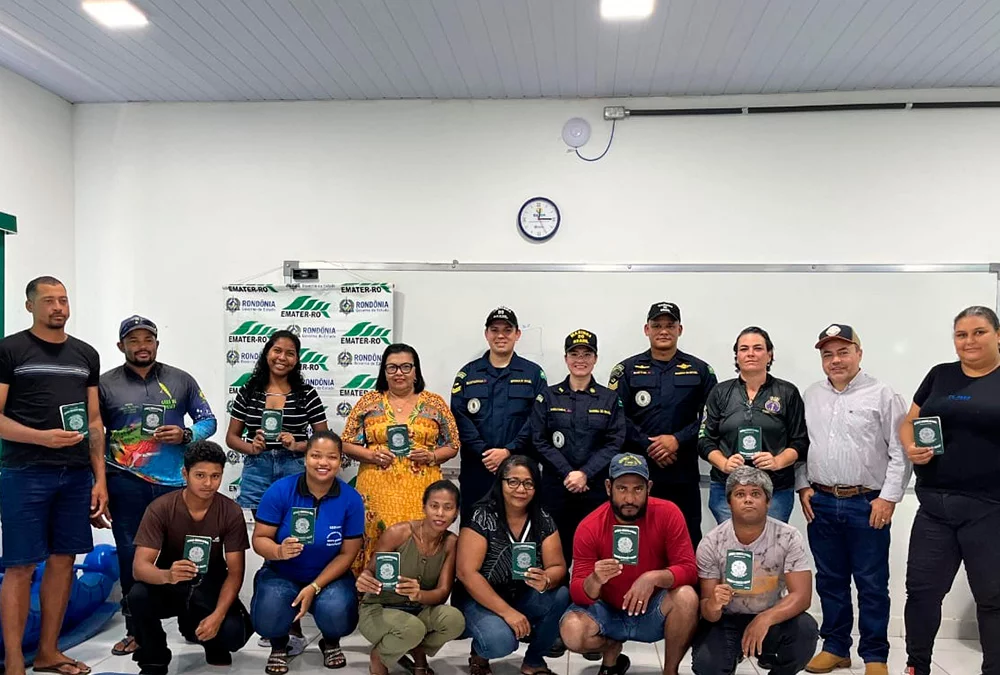 A gerente regional da Emater-RO, Jaqueline Ribeiro Rosas, destacou que neste mês de outubro, os agricultores e pescadores artesanais de Pedras Negras, comunidade quilombola do Município de São Francisco do Guaporé, receberam da Marinha do Brasil, carteiras de habilitação aquaviária como resultado da participação de curso coordenado pela Emater-RO”.