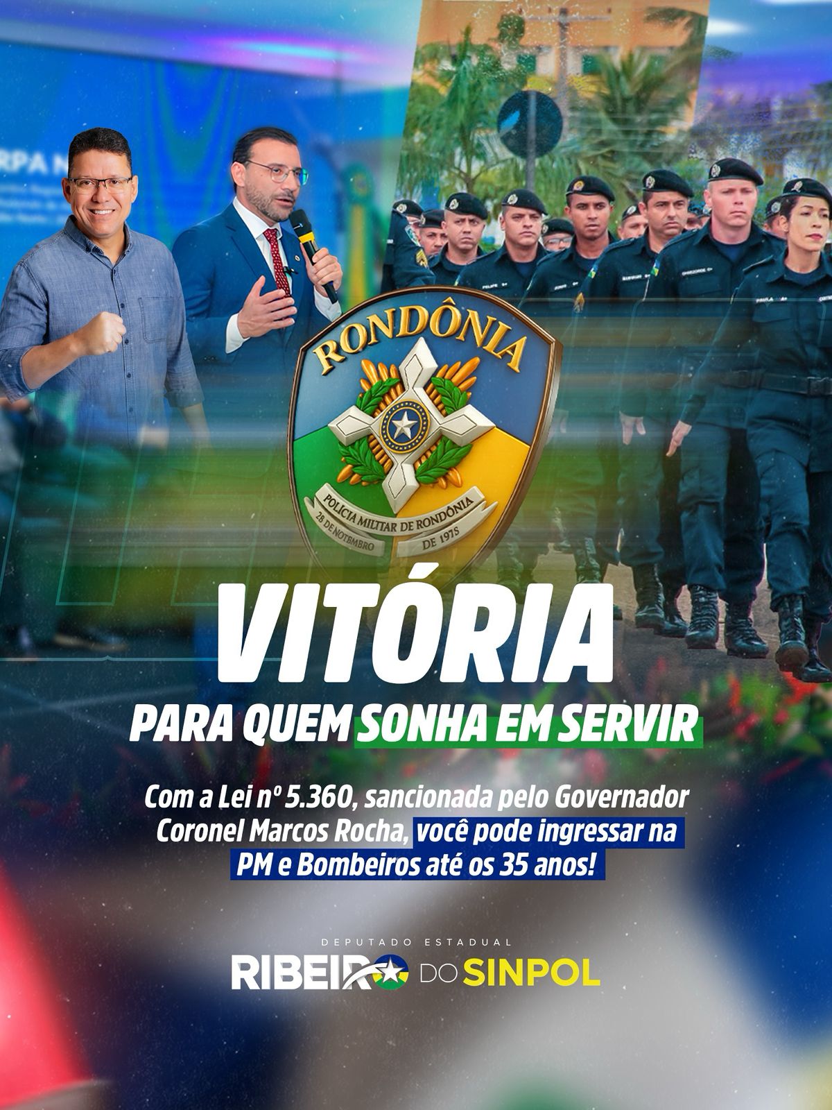 O deputado estadual Ribeiro do Sinpol, vice-líder do Governo na Assembleia Legislativa, destacou a sensibilidade do governador Coronel Marcos Rocha ao sancionar a Lei nº 5.360/2022, que amplia para 35 anos a idade máxima de ingresso na Polícia Militar e no Corpo de Bombeiros Militar de Rondônia.