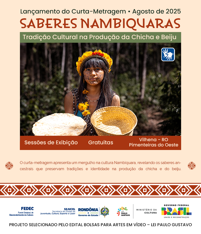 Com o objetivo de retratar e valorizar a cultura indígena Nambiquara, está em fase de produção o curta-metragem “Saberes Nambiquaras: Tradição Cultural na Produção da Chicha e Beiju”, produzido em Vilhena (RO).