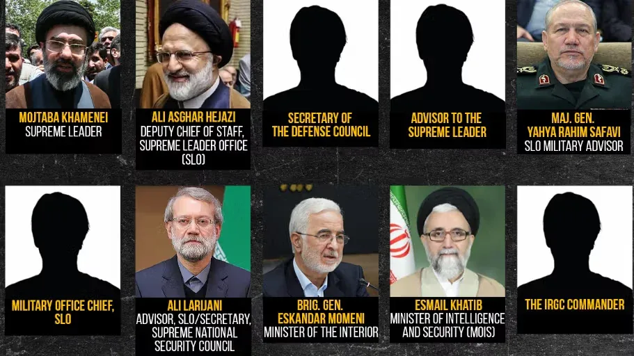 Além dos nomes citados, o material menciona quatro cargos de alto escalão sem identificar os ocupantes: o secretário do Conselho Supremo de Defesa, o chefe do escritório militar do Líder Supremo, o comandante-em-chefe do Corpo da Guarda Revolucionária Islâmica e um conselheiro do Líder Supremo.
