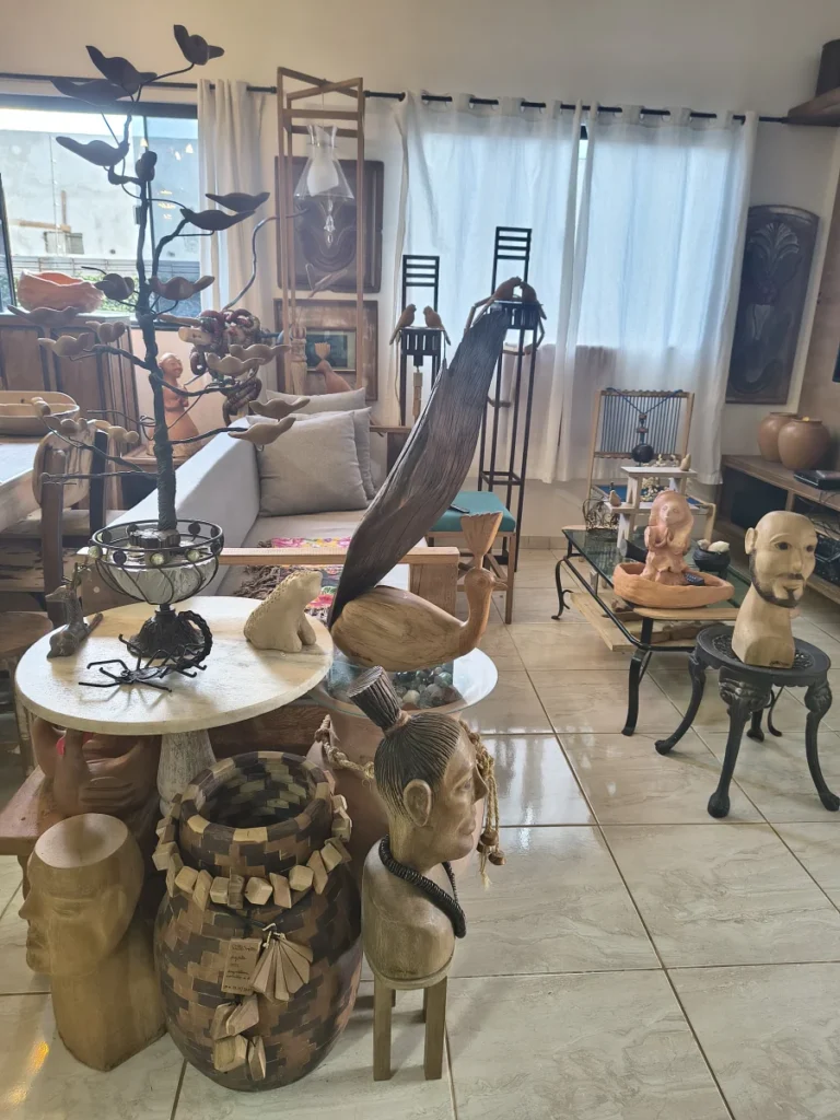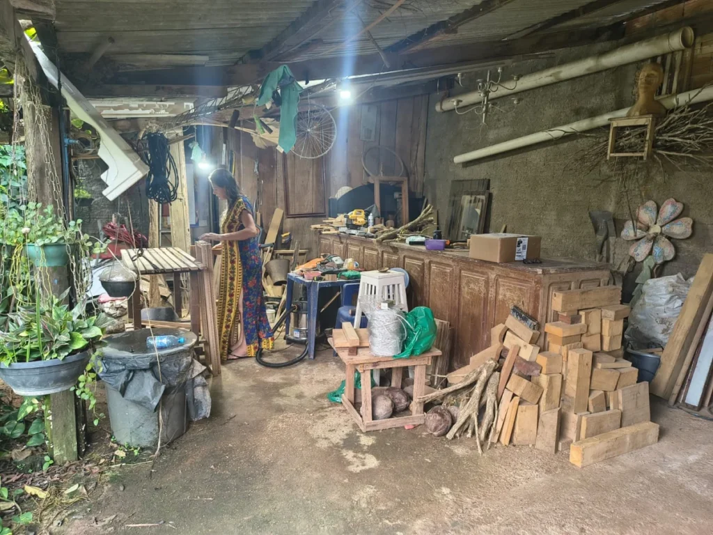 Ainda nas vivências do sítio, Gutta conta que o pai era um grande conhecedor de madeira. Conseguia identificar todas as espécies e ela foi buscando junto a ele todo esse conhecimento. Gutta viu na madeira a oportunidade de fazer arte.
