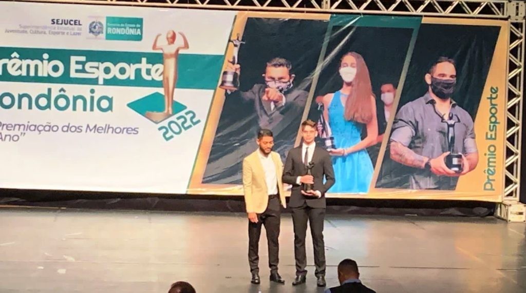 O atleta cacoalense Sérgio Manoel de Oliveira Perini, aluno de Kung Fu Wushu da Associação Beneficente de Educação Marcial (ABEM), recebeu na segunda-feira, dia 12, o prêmio de melhor do ano em sua modalidade de esporte em solenidade realizada no Teatro Estadual Palácio das Artes, em Porto Velho. O prêmio foi concedido pelo Conselho Estadual de Desporto e Lazer (Conedel) e chegou a sua 6ª edição em 2022. O evento premiou atletas, técnicos, árbitros, professores de Educação Física e profissionais da imprensa.