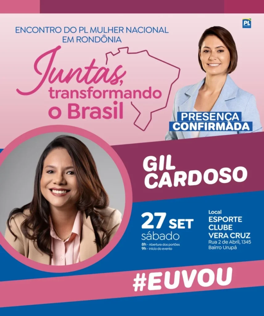 “Será um momento de união, diálogo e fortalecimento. A presença de Michelle Bolsonaro reforça o compromisso do PL com as mulheres, a família e os valores que defendemos”, afirmou Gil.