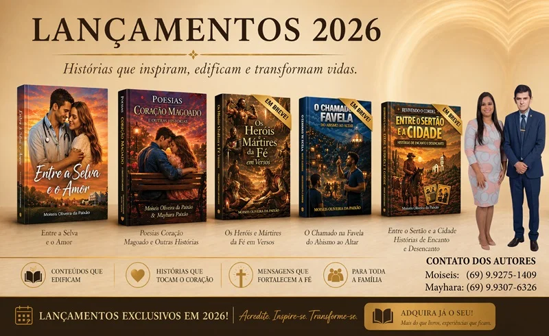 Escritores cacoalenses ampliam sua trajetória literária em abril com os lançamentos de Entre a Selva e o Amor e Poesias: Coração Magoado e Outras Histórias, reforçando sua atuação na literatura independente brasileira.