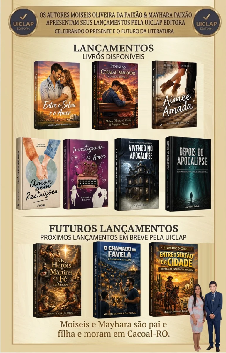 Os escritores Moiseis Oliveira da Paixão e Mayhara Paixão vêm consolidando sua presença no cenário da literatura independente brasileira, com uma produção diversificada que transita entre romance, poesia, ficção e obras de cunho social. Publicadas pela UICLAP Editora, suas obras destacam-se pela linguagem acessível e pela conexão direta com o público leitor.