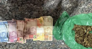 Em continuidade à ação, foi realizada busca pessoal, sendo localizada uma quantia em dinheiro em espécie. A substância apreendida, após pesagem realizada na unidade policial, totalizou aproximadamente 100 gramas.