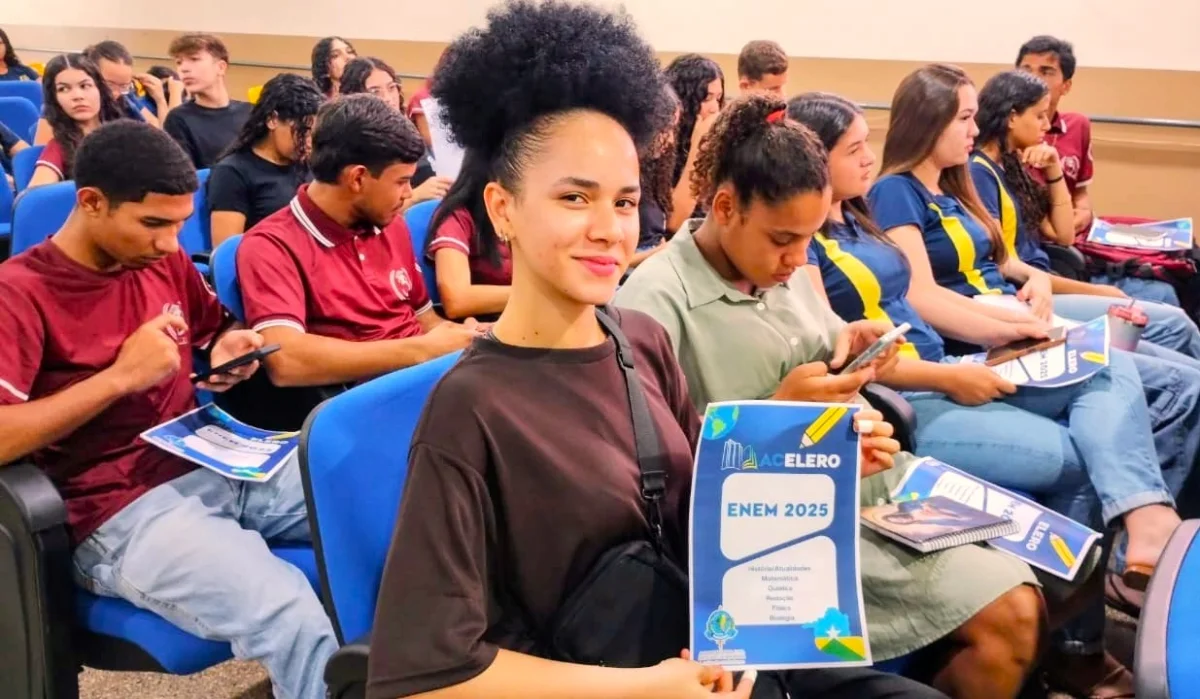 O 4º aulão Acelero Enem 2025 aconteceu no Ceeja de Rolim de Moura e reuniu mais de 200 estudantes. O preparatório já passou por Porto Velho, Ariquemes e Vilhena. Entre os participantes, Tháviny Brito, de 17 anos, aluna do 3º ano da Escola Américo Brasiliense, de Novo Horizonte, ressaltou: “quero estudar Psicologia e tirar dúvidas principalmente de Matemática, disciplina em que acho difícil”.