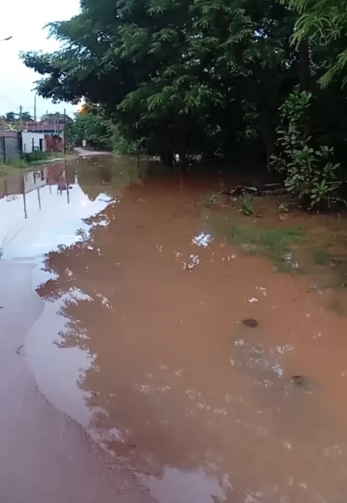 Após a forte chuva que atingiu a região neste domingo (19), o Rio Pirarara transbordou, causando preocupação entre os moradores que vivem nas áreas próximas. O nível da água subiu rapidamente, invadindo ruas e se aproximando de residências, o que gerou medo e insegurança na comunidade.