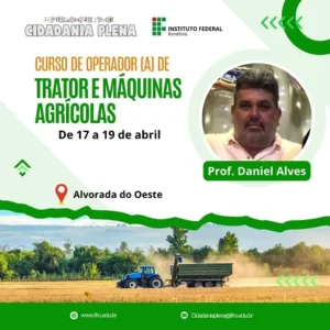 O curso de operador de trator e máquinas agrícolas, realizado pelo programa Cidadania Plena, iniciativa do Instituto Federal de Rondônia (Ifro), custeada com recursos destinados através do mandado da deputada federal Sílvia Cristina, chega aos produtores rurais de Alvorada do Oeste, neste final de semana.