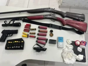 Uma ocorrência inicialmente registrada como violência doméstica terminou com a prisão de um homem suspeito de agressão, posse irregular de armas de fogo e tráfico de drogas, na manhã desta segunda-feira (9), na zona rural do município de Theobroma. Durante a ação, a Polícia Militar de Rondônia apreendeu espingardas, munições, materiais para fabricação de cartuchos, além de drogas e uma balança de precisão.