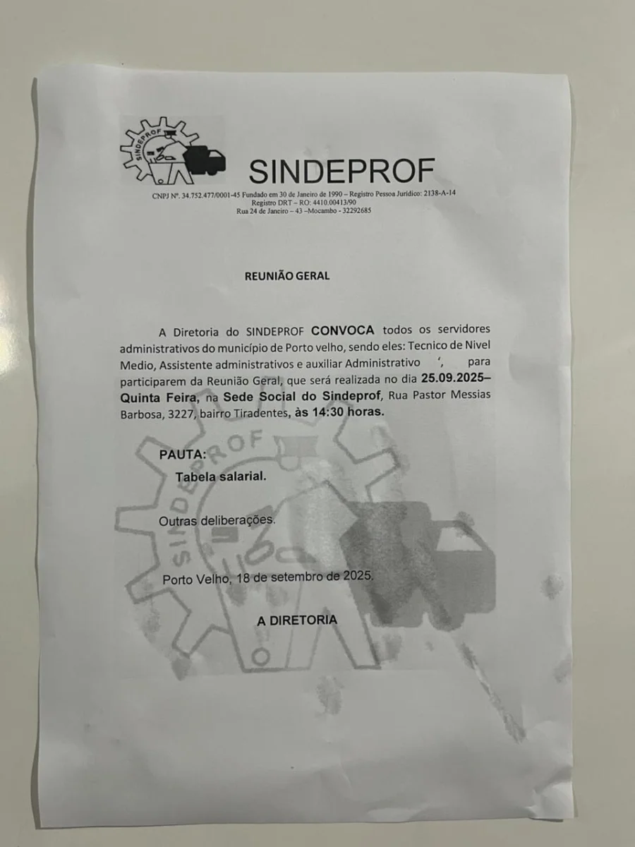 A última pauta é a apresentação da tabela de desmembramento da classe dos assistentes e técnicos administrativos do Grupo Geral, no dia 25 de setembro, às 14h30, na sede social. É uma pauta que já vinha sendo discutida com a categoria e que precisa avançar no Executivo Municipal.